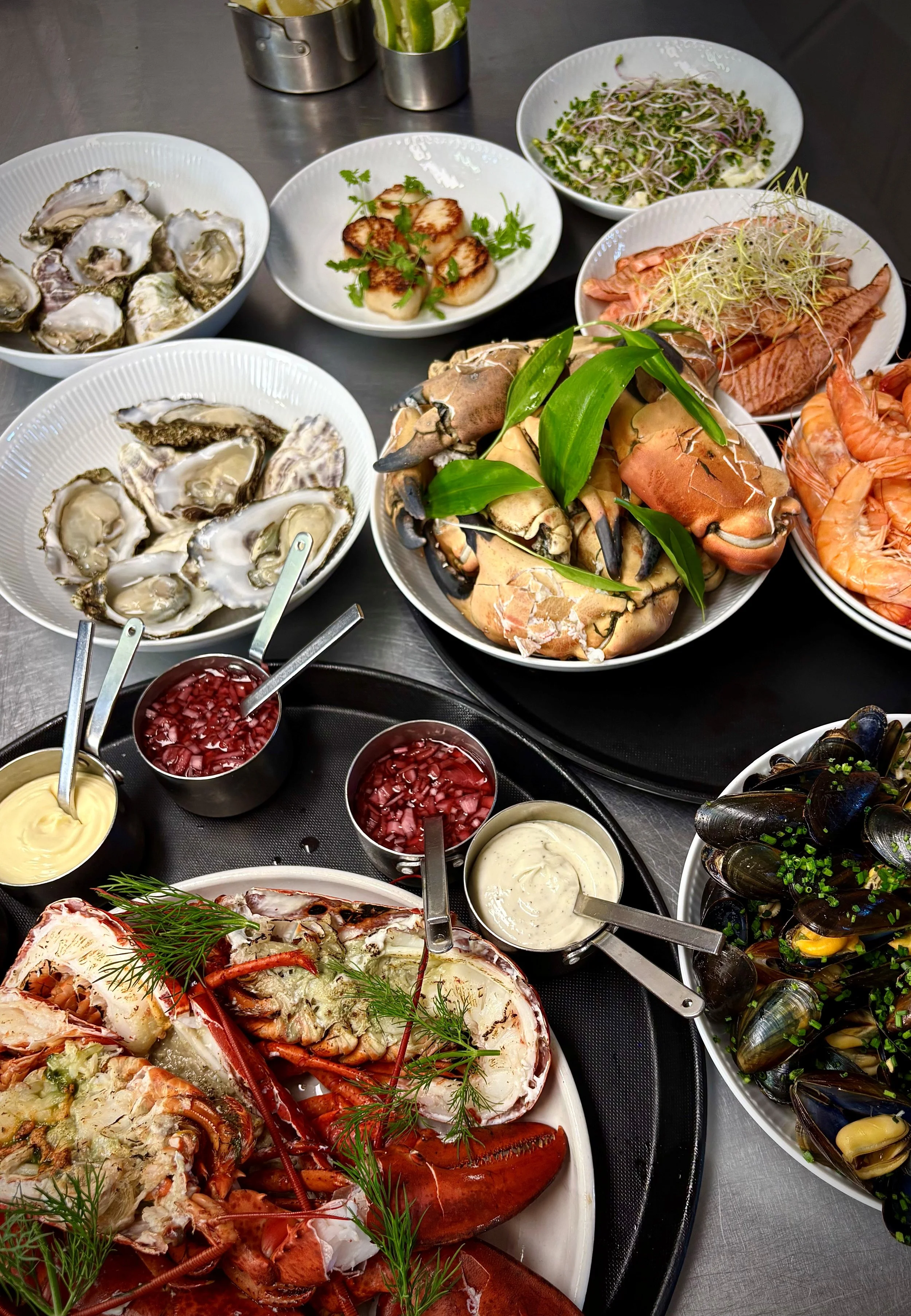 Forkæl dine sanser med vores overdådige fisk- og skaldyrsbord, der er skabt til at blive delt i godt selskab.