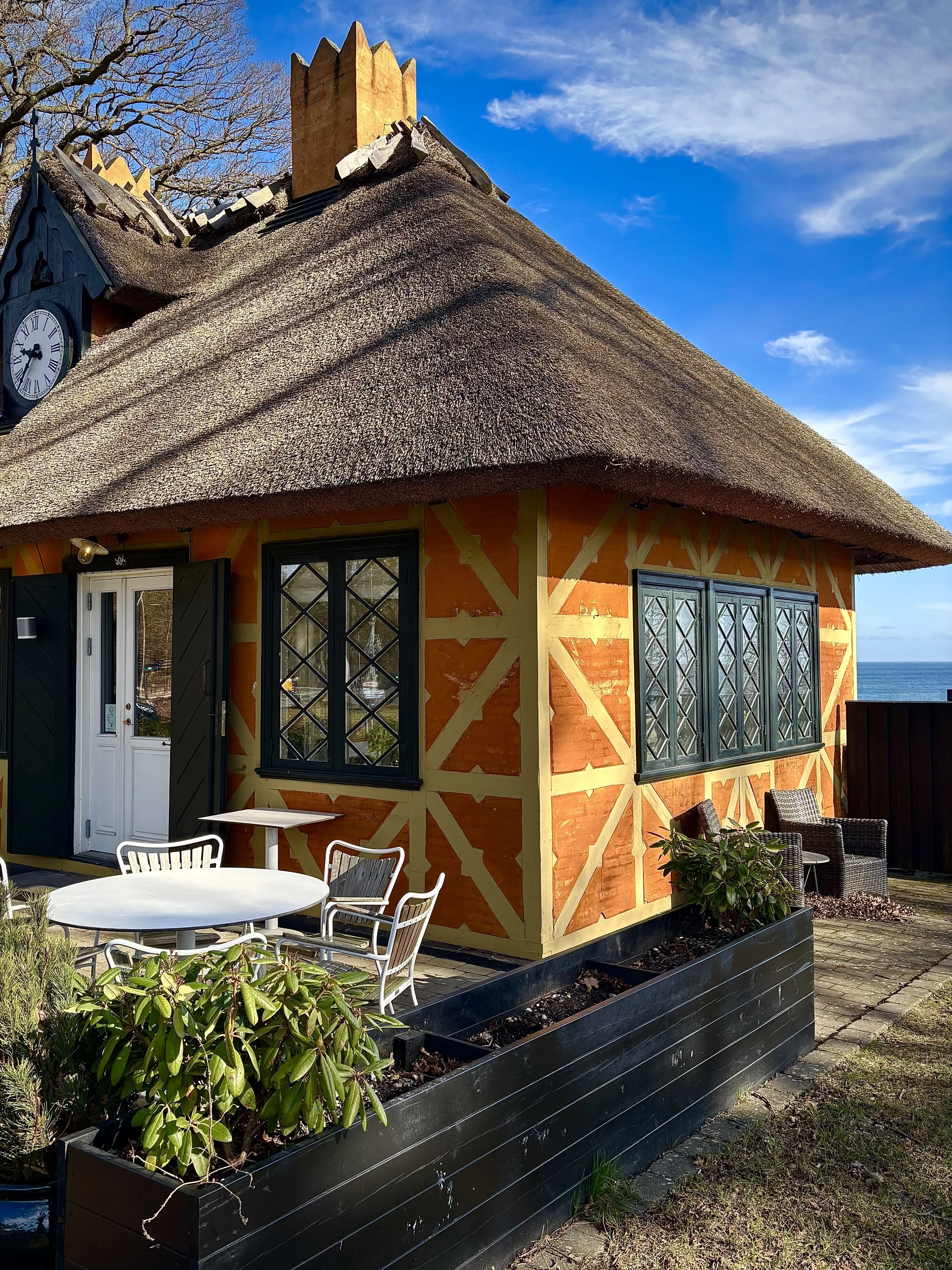 Den gule cottage lod Bindesbøll opføre som portnerhus ved kurbadets indgang. Uret på cottagens tag blev bygget af den kendte tårnursfabrikant Henrik Kühl, der få år senere fik international berømmelse med sine ure på verdensudstillingen i London i 1851. Man kan levende forestille sig det summende leben der har været foran portnerhuset, når urets klokkespil på husets tag mindede gæsterne om, at det var tid at hoppe på dagens sidste hestetrukne omnibus. Fra 1860erne blev trafikforbindelsen til Klampenborg bedre og badegæsterne fra København kunne tage toget eller dampskibet når de skulle hjem til byen om aftenen.
