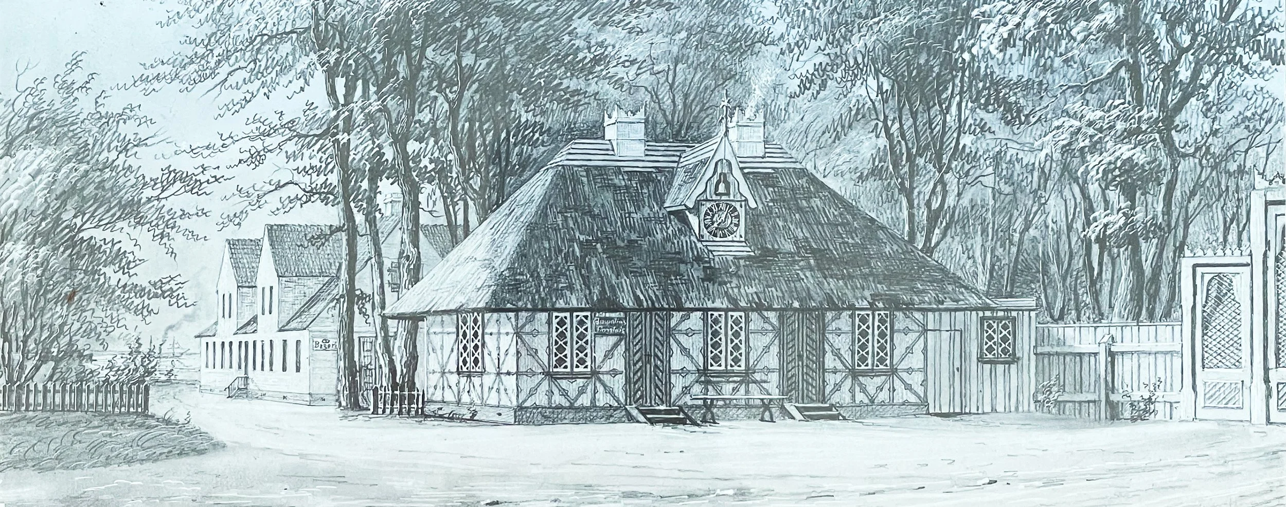Billedet til højre er en original tegning af maleren Carl Baagöe fra 1855, som vi venligst har fået foræret.
